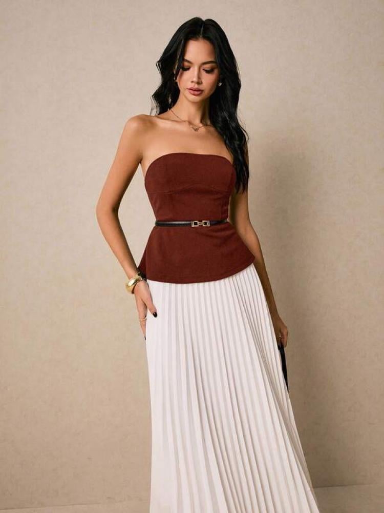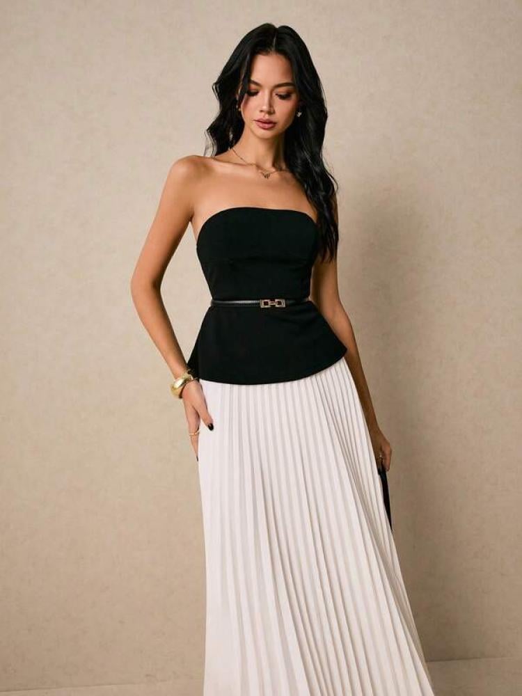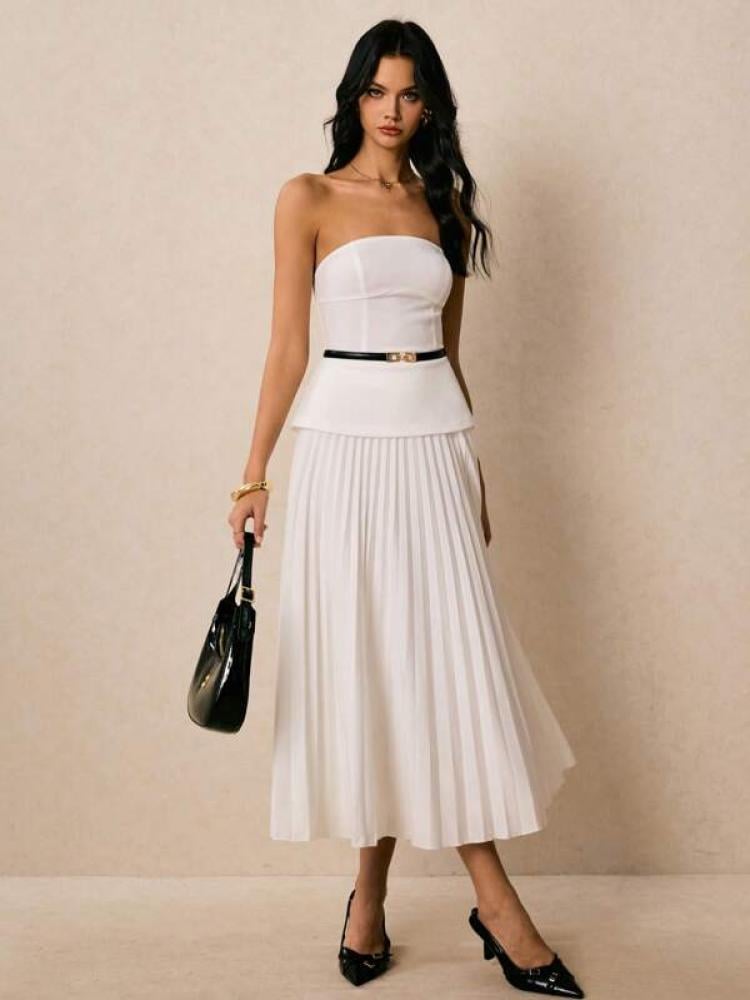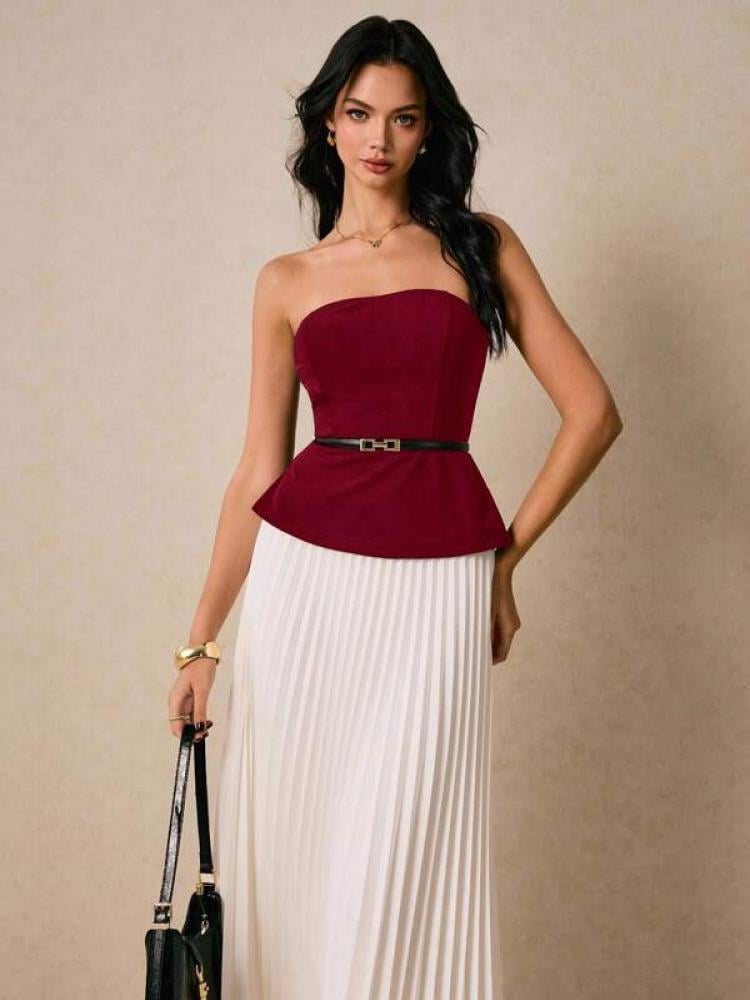 - بلوزة بلا حمالات مع بيبلم يبرز الخصر بإحساس أنثوي ناعم