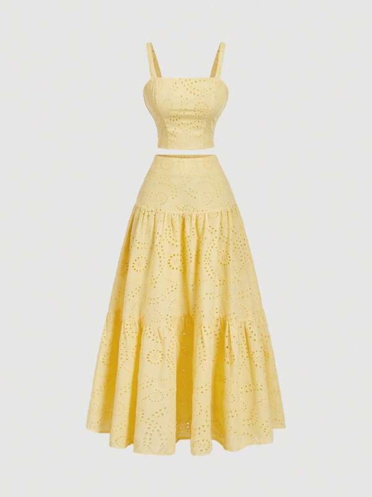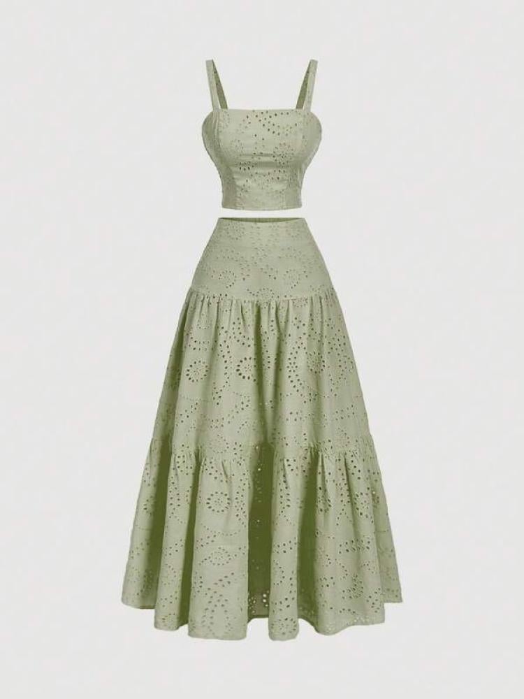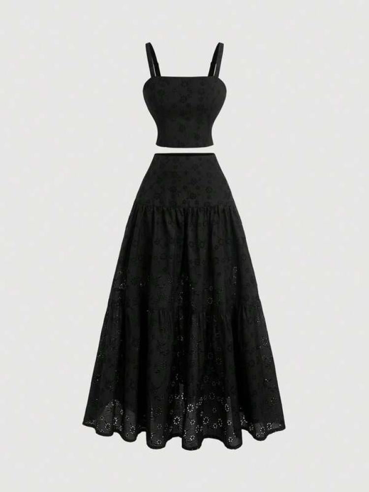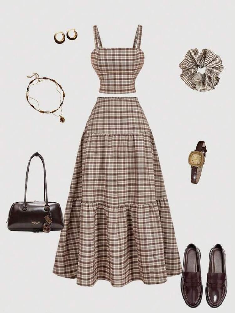 • تصميم عملي يجمع بين التوب القصير والتنورة الواسعة